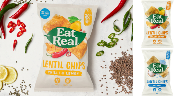All Eat Real products remain free from artificial colours, flavours and ingredients, with the Hummus and Lentil ranges containing 30% less fat than regular potato chips.