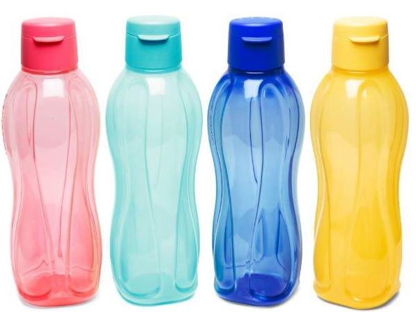 Below are representations of the respective water bottles:Tupperware Eco Bottles