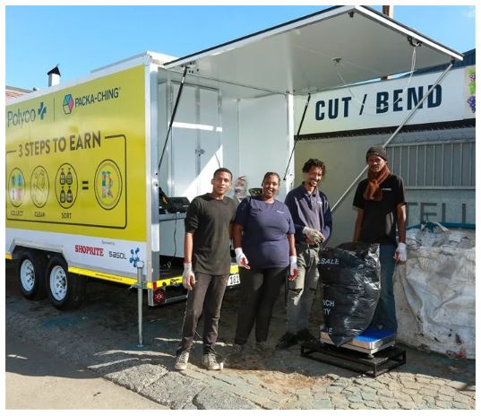 With mobile units operating in low-income areas where recycling infrastructure is hard to come by, Packa-Ching incentivises communities to collect and recycle waste. Recyclable packaging materials, including plastic, glass, cans, and paper, are weighed, and community members are paid instantly via a cashless eWallet system. The funds can be used at any participating retailer or can be withdrawn or transferred to anyone in South Africa.
