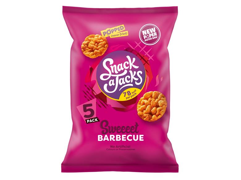 The new packaging format will be available in the next month across Snack A Jacks’ Salt & Vinegar, Sour Cream & Chive and BBQ flavours. Apparently, the outer paper bag can be widely recycled in home recycling bins, collected at kerbside alongside other paper packaging, and is set to lower the greenhouse gas emissions of each pack by 52%.