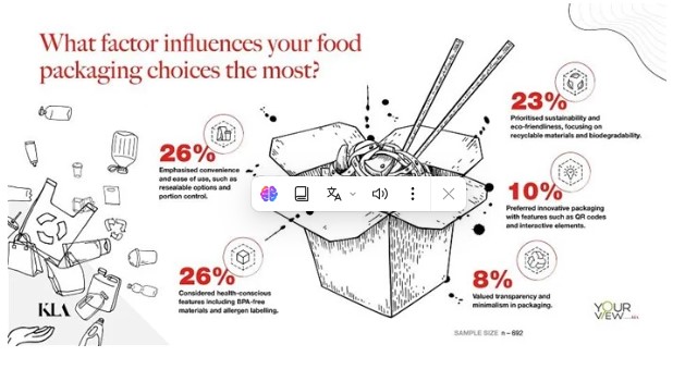 Respondents from the KLA YourView poll indicated the following leading factors that influenced their food packaging choices: