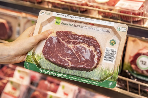The new paper trays used for Woolworths’ Specially Selected and Grass Fed beef ranges are the first step in a plan to make all Woolworths’ Own Brand red meat trays recyclable over the coming months.