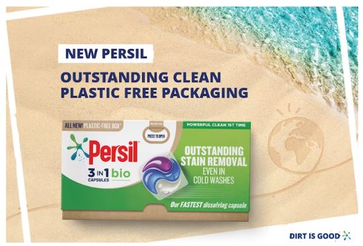 Unilever’s new laundry capsule and plastic-free container for Persil and its sister brands feature an improved sustainability profile while maintaining functionality.