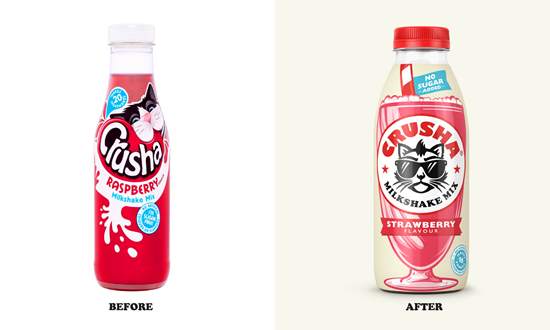 Crusha milkshake syrup brand has revamped its branding, working with Bristol-based design studio Outlaw.