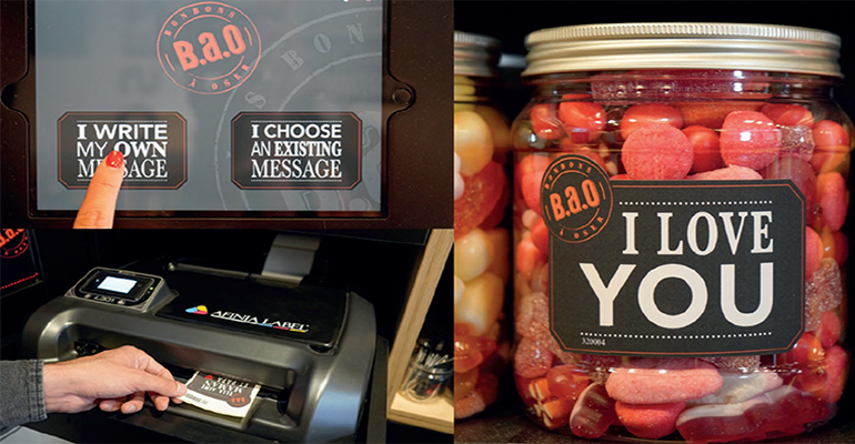 Using this system, B.a.o Candy Box customers type their message into an app, preview the label, confirm, then the label is sent via Wi-Fi straight to the till where the label is displayed on a screen so that the customer can approve their label design and then it is printed automatically. The time it takes to complete the transaction is enough to print the label, which is what champions the effectiveness of this system.